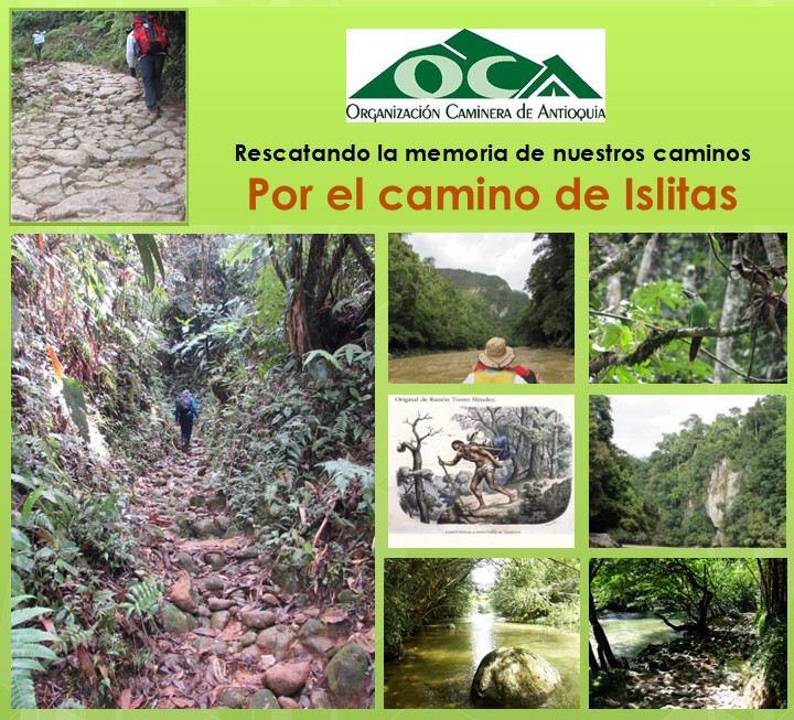 Este camino recorre la hermosa tierra de grandes y caudolosos ríos como el Magdalena, el Samaná, el Nare y Guatapé, también de ríos cristalinos como el Arenal y el Bizcocho, las represas más importantes del país, los caminantes disfrutarán de uno de los caminos más importantes en nuestra historia: el camino de Islitas y Juntas del Nare, reconocido como la autopista hacia el Magdalena en el siglo XIX y uno de los más importantes de Antioquia en el pasado, estos caminos atraviesan hermosas zonas boscosas con balcones naturales sin igual y son bañados por los ríos más cristalinos de Antioquia, caminos que fueron testigos mudos de la pujanza de un pueblo que forjó su historia a lomo de mula entre agrestes montañas. Mayor información y fotos del camino AQUÍ.